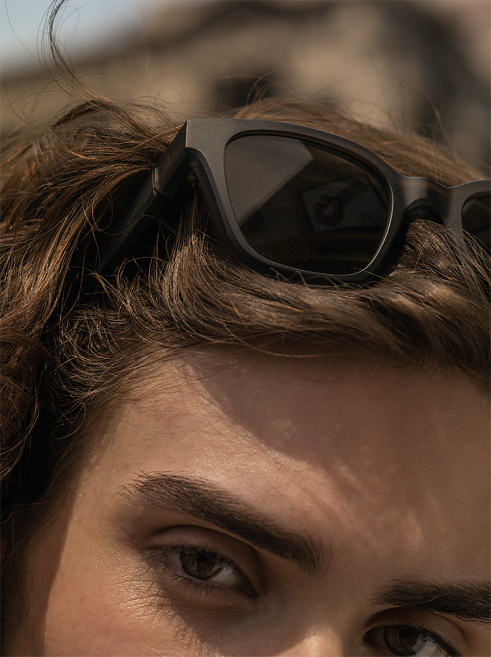 The visual system celebrates the tensions at play: between design and engineering, precision and dynamism, the explicit and the implied. The new Bose Frames brand is brought to life by these counterpoints, fueled by a rhythmic spirit of restless experimentation.